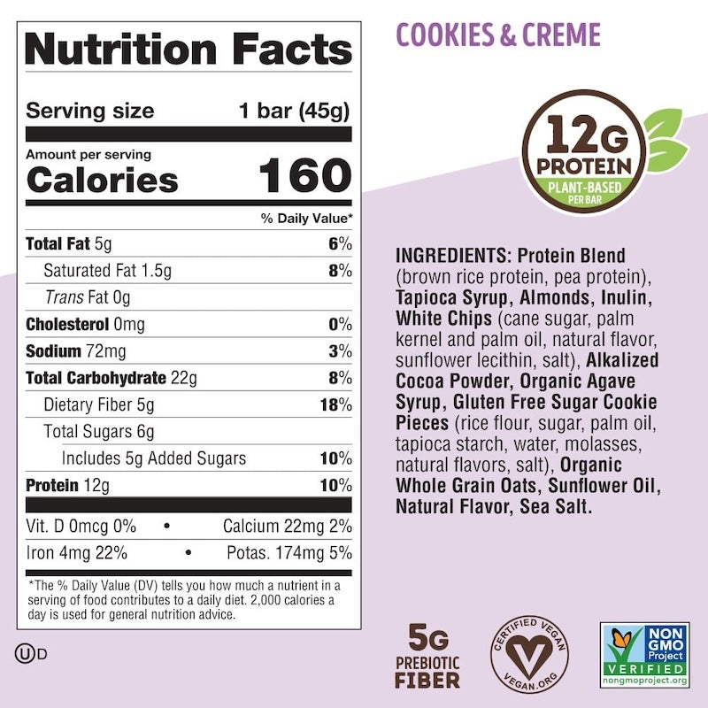 Yes, our Complete Cookie-fied Bar is small... but it's mighty! We have 12g of protein and 5g of fiber packed into a 45-gram bar - other bars out there are the same size. We are confident that our small bar will satisfy your big snack attacks and sweet cravings. Size doesn't matter! Lenny & Larry's Complete Cookie-fied Bar has 6g of sugar, and is gluten free, Non-GMO Project Verified, vegan and kosher friendly. The bars are free from dairy, egg or soy ingredients, high fructose corn syrup and artificial sweeteners.