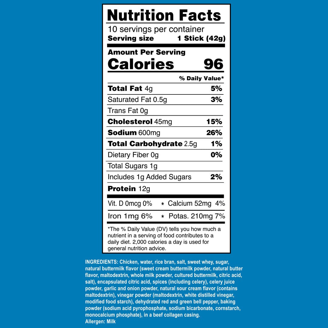 Think buffalo chicken wings but without all of the mess (or guilt). Plus 12g protein. Our all-natural Ostrim Chicken Buffalo Wing Snack Sticks are sure to take your snacking to a whole new mouthwatering level!