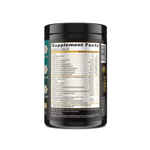 - Choline L-Bitartrate: Choline is vital for brain health and cognitive function. It supports memory and focus while also promoting fat metabolism.